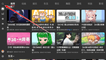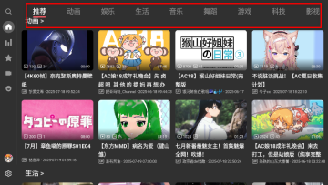 1.打开ACAC,进入应用后可以看到首页顶端的分类板块,包括推荐、动画、娱乐、生活等