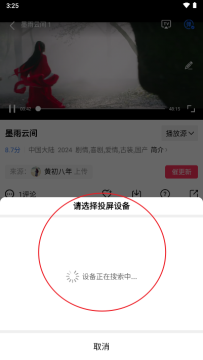 4、然后搜索附近的电视投屏设备即可,注意电视要和手机在同一个wifi下面才可以投屏。