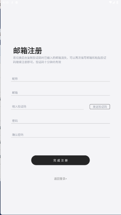 2、需要输入昵称,邮箱及验证码和两次密码。