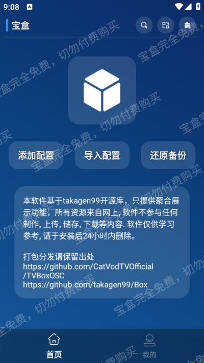 宝盒MBox软件内置仓库版基于taka版TVBox修改的,UI风格有一点点调整,支持多(单)仓接口地址,还新增了一个实验功能“自动换源”,在某点播源播放失败时,会自动搜索其它源尝试播放,,会提前匹配源站最快的接口进行调用播放,这样就不需要自己手动去更换搜索影视源了。