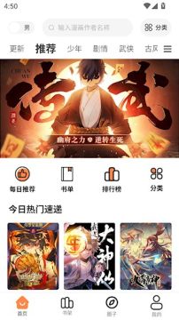 2.如果你还不确定看什么,可以通过首页的“分类”选项(如古风、校园、悬疑等)
