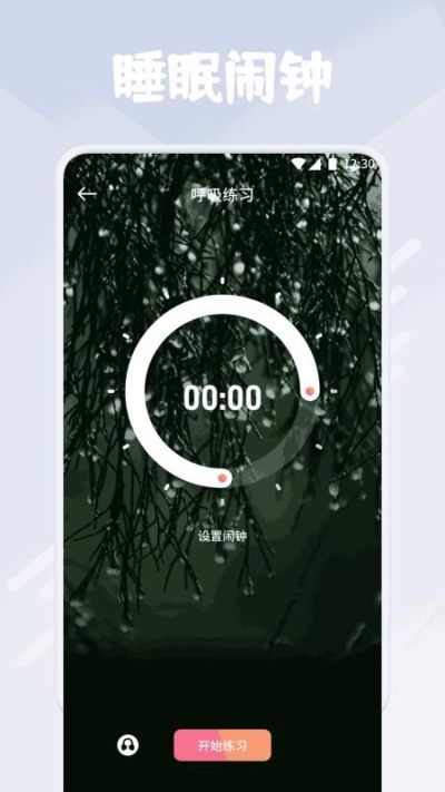 2、包含睡眠闹钟功能,结合呼吸训练帮助用户做好入眠准备,同时记录睡眠数据,便于管理睡眠进程。
