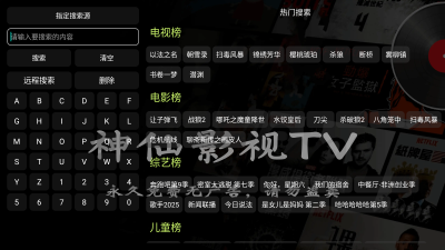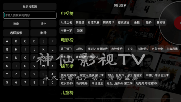 在电视上打开神仙影视TV版,进入应用点击左上角放大镜按钮