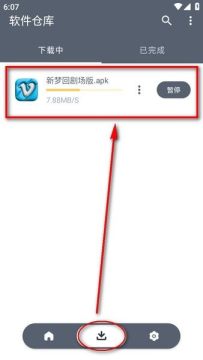 4.点击底部中间的下载按钮,即可查看下载情况,也可以管理下载好的安装包,安装好了就可以删除掉,免得占内存