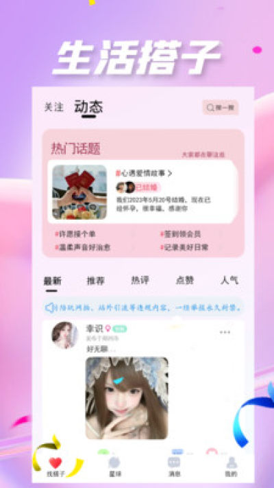 在Yumo予陌这个平台上,用户可以通过多种方式互动交流,无论是基于共同兴趣的话题讨论,还是参与各类线上线下活动,甚至是通过独特的“找搭子”功能来发现那些和你一样渴望建立联系的人。Yumo予陌致力于创造一个包容、友善的环境,让每一位用户,不论男女,都能轻松地结识新朋友,拓展自己的社交圈。无论你是谁,在Yumo予陌,开启一段全新的社交旅程从未如此简单。