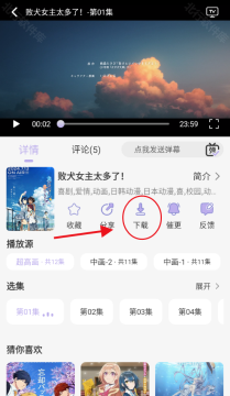 2、点击对应的番剧封面,进入剧集播放页面,点击封面旁边的【下载】