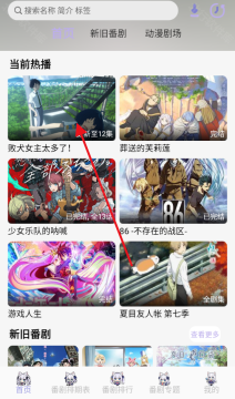 1、首页上方搜索框可以直接搜索你想看资源,或者在当前热播中找到你想看的番剧