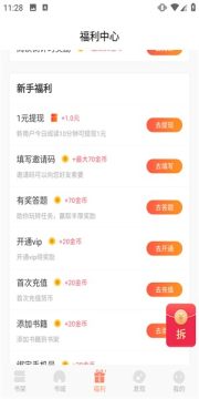3、针对新手给出了新手福利,输入邀请码可以邀请好友一起来阅读。