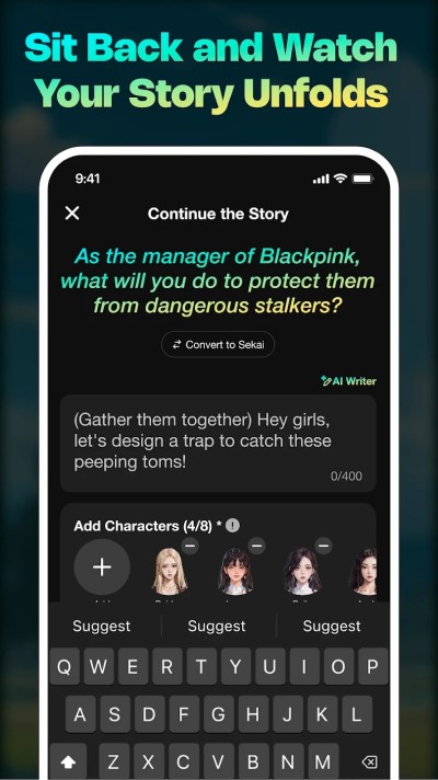 无限续集功能:通过 Sekai 的续集功能让您的故事继续发展,将您的创作变成成熟的动画系列,每一集都充满新的曲折和刺激。