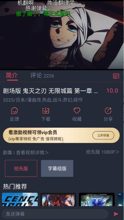 3.为了方便用户在没有网络连接的情况下也能观看喜爱的动漫,app提供了便捷的一键下载功能,支持全平台无水印视频下载。