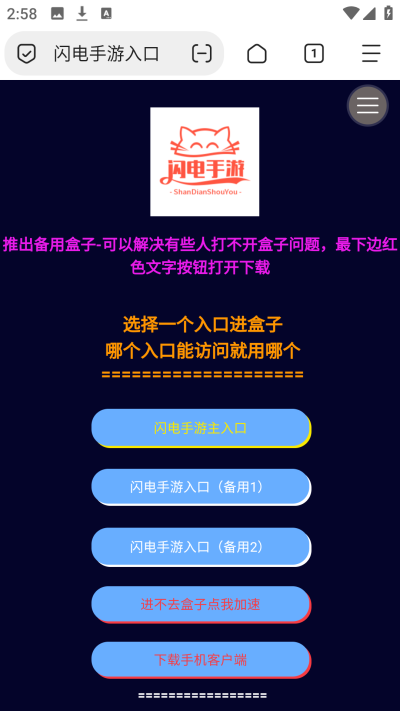 闪电手游游戏盒子是精品汇聚手游平台,这是斌哥游戏盒子合作的一款手游盒子,在这里可以下载非常多的BT和传奇游戏,这里的游戏都是顶级手游,无限制元宝,各种超高的福利内容等你来体验,还有各种精品内购手游等你来获取,喜欢的可以下载。