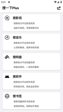 搜一下Plus是一款功能强大的万能搜索神器,整合了全网影视、音乐、网盘、软件、书签等海量资源,更贴心提供短视频去水印等实用功能。无需注册登录,下载即可免费使用所有功能,真正实现"一个软件解决所有搜索需求"。简洁直观的操作界面配合高效的搜索体验,让您随时随地快速获取所需内容,是提升效率、节省时间的必备工具。