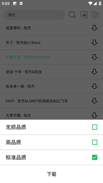 4、点击歌曲后面的下载功能,选择下载的音质。