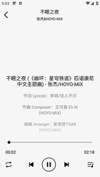 3、点击歌曲会自动播放,在播放器页面可以查看歌词。