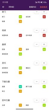 3、我们在评判球员最终数据的时候,关注的是平箭头下、风格加成、闪耀1加成之后的数据,也就是我们以平箭头进入比赛时的真实数据,这也是为什么我让大家在加点前先把球队风格切换到100。举例说,某黄传后腰,初始速度70,风格加成之后变成72,这时候我们只需要给他加8点速度,就可以让他的速度最终达到80。再比如,某高光边锋,初始空传72,风格加成后74,我们只需要加5点空传,然后由于高光/时刻边锋的闪耀1还会给空传+1,所以最终的空传就达到了80。