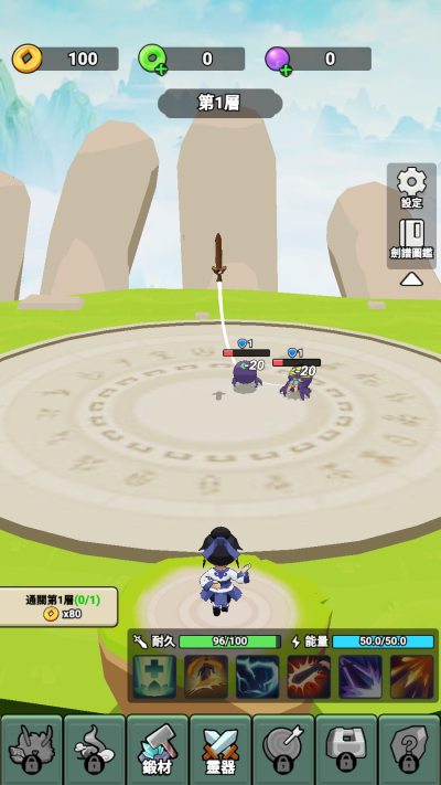 进入游戏,点击召唤飞剑消灭怪物