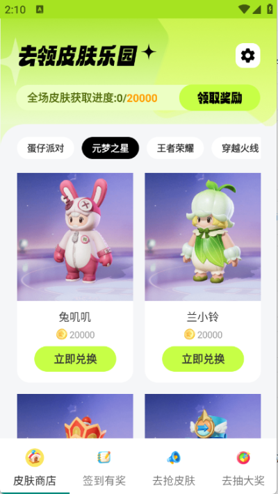 去领皮肤乐园app是一款手机免费领游戏皮肤的软件,包含蛋仔派对、元梦之星、王者荣耀以及穿越火线等等游戏类型,完成游戏平台发布的任务即可领取超值皮肤奖励,对软件感兴趣的话不妨点击下载试试!