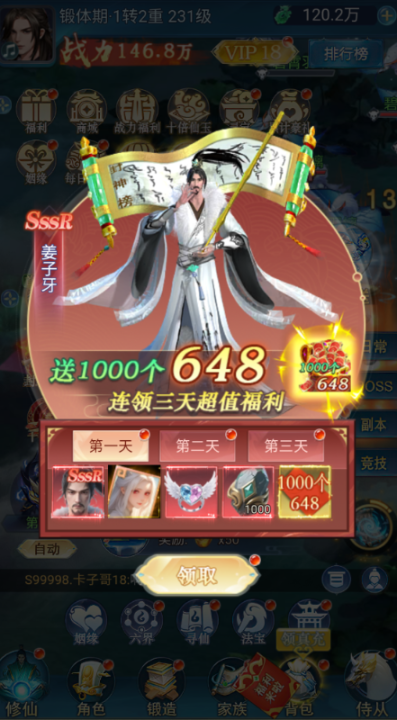 【首充豪礼】首充立得1000个648,海量仙玉每日花