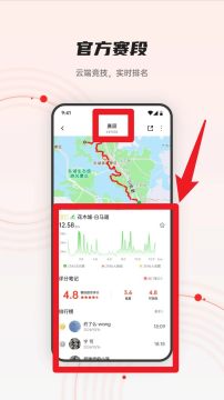 2、可以查看云端骑行比赛相关动态,有排行榜和数据路线等功能。