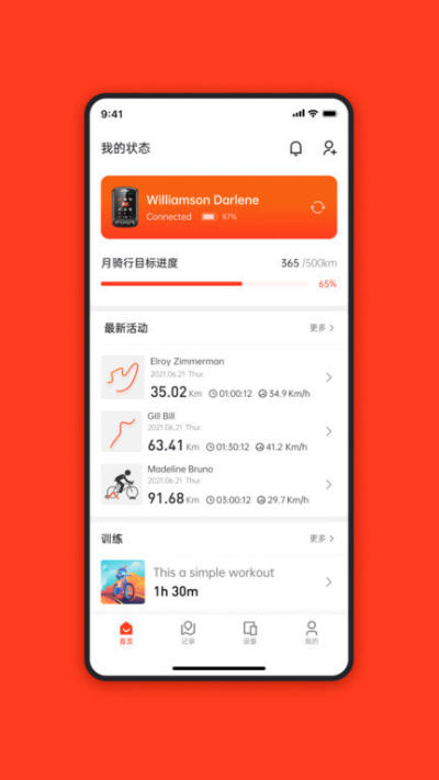 与 iGPSPORT 官网账户同步,实现多端数据统一,随时随地在手机上查看个人骑行档案。