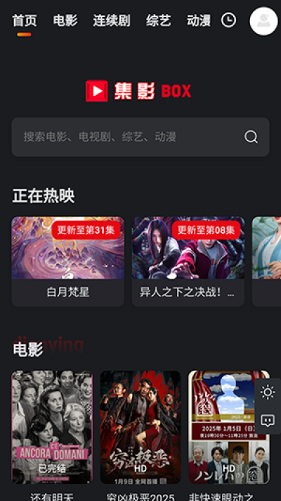 集影BOX官方正版下载是一款专为移动端打造的清爽观影应用,以“免费、纯净、流畅”为核心,聚合全网高清影视资源,覆盖电影、电视剧、综艺、动漫、娱乐热点等全品类内容。用户无需注册登录即可免费观看,无广告干扰的纯净界面搭配多线路智能播放技术,为用户提供沉浸式观影体验,随时随地畅享大屏视觉盛宴