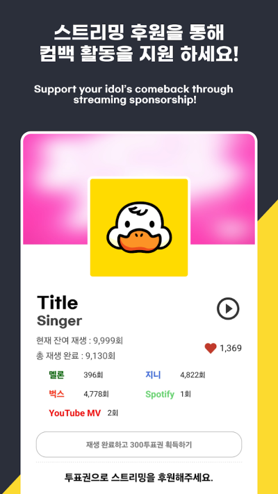 流媒体打榜助力:粉丝投票可转化为Spotify、Melon等平台流媒体播放量,直接冲击音乐榜单,助力偶像作品成绩飙升!