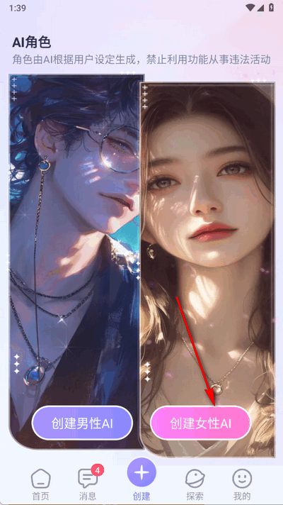 平台内置海量风格多样的 AI 角色形象,涵盖古风、现代、科幻、奇幻等多种美术风格,每位角色都拥有精美立绘与独特性格设定。