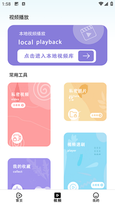 2、在播放器页面,授权本地权限后就可以显示所有视频内容。