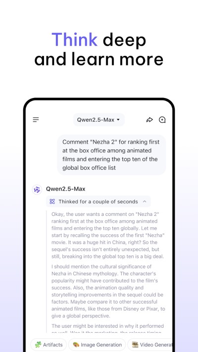 Qwen Chat 由 QwQ 提供支持,拥有卓越的高级推理和问题解决能力。这使得它能够清晰精准地处理复杂问题,并利用实时互联网数据提供全面、合理且可行的解决方案。