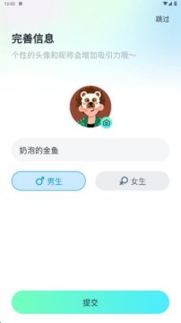 2、初次登录,需要完善个人信息,为交友提供数据参考。