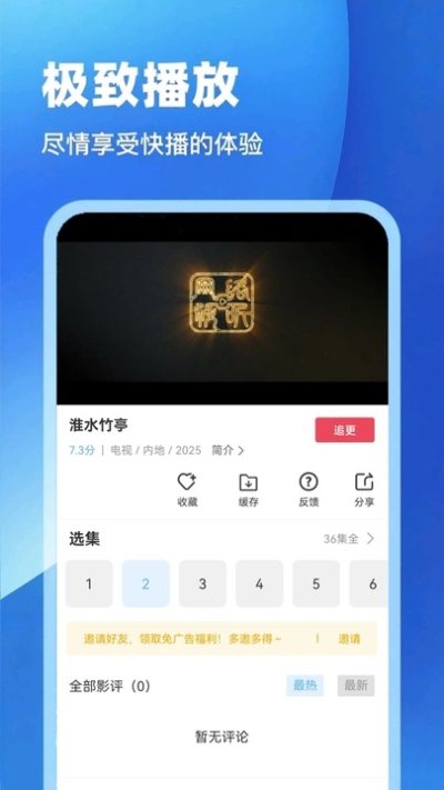 3、有邀请好友免广告、影评互动等功能,用户可分享影视、交流看法,还能通过邀请获取福利。