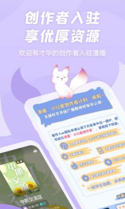 4.创作者入驻:漫播app欢迎有才华的创作者入驻,上传和管理自己的作品,优质作品将有机会获得站内推荐和微博推广等资源福利。