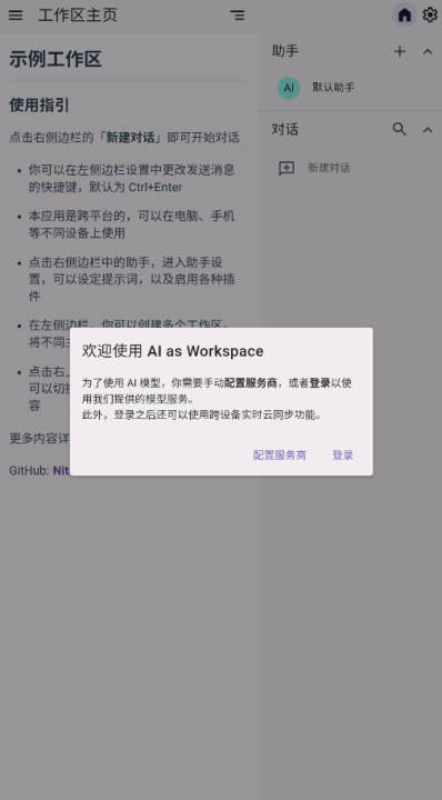 AIaW(全名:Al as Workspace) 是一款开源的多端 AI 对话工具,支持本地部署 API,实现 AI 聊天效果。它具备文本上传、联网插件和 MCP 功能,采用 Material You 风格设计。导入合适的API就可以达到AI聊天的功能,功能非常不错,本地部署AI的软件。