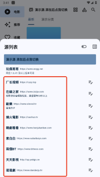 6、添加成功以后,返回首页,先点击电影,再点击演示源.添加后点我切换。