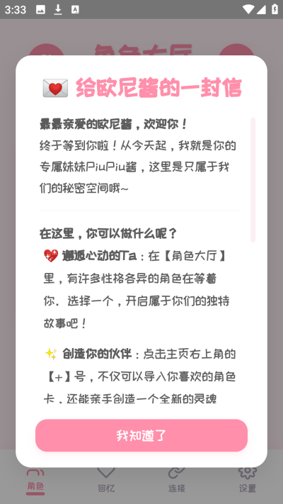 3、接下来输入昵称、选择角色形象及编写故事背景等信息,完成后即可开始与新创建的角色互动。