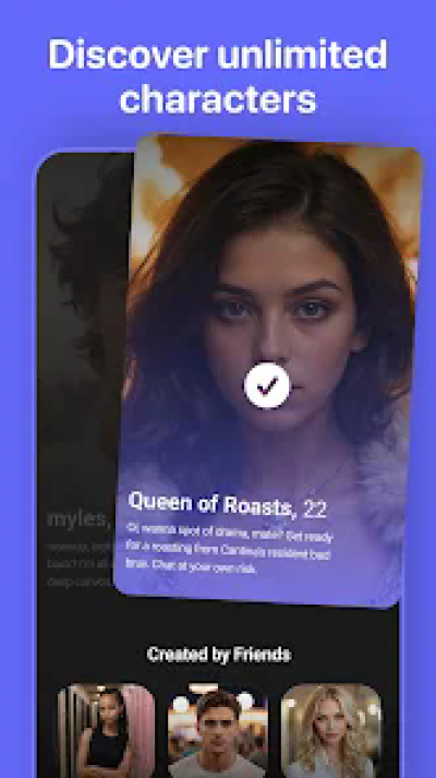 用户可以使用先进的AI 技术创建自己的角色,或者从平台提供的数千个现有角色中选择。
