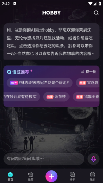 1、在首页可以直接与虚拟AI进行对话,无论你想找派对还是找活动,或是想要聊天都可以在这里直接输入内容