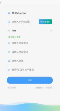 3、输入自己的手机号,设定昵称、输入邀请码完成注册;