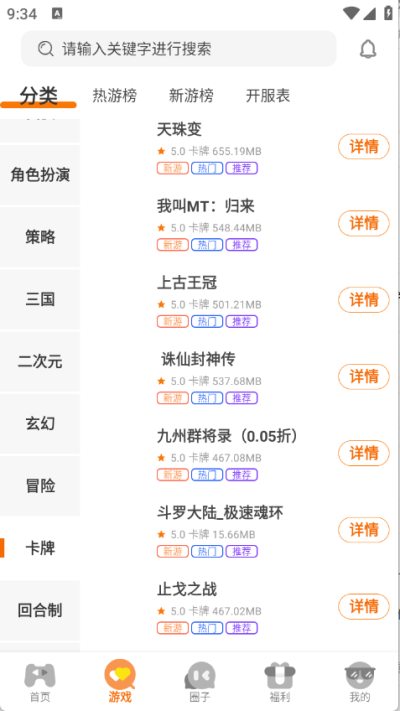 3、各种人气榜、下载榜、最新开服都有,分类详细,各种最新游戏免费下载。