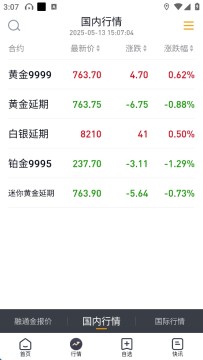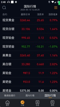 3、在行情板块,用户可以了解到最新价,涨跌情况,国际国内行情。