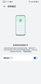 默认是开启的,把增强防护关闭掉,即可关闭纯净模式!