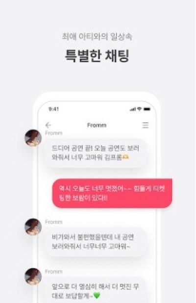 亲密的偶像粉丝互动:为偶像明星和粉丝之间搭建了一座直接沟通的桥梁,粉丝可以像1:1聊天一样接收爱豆呼唤自己名字的消息,还可以给爱豆发送图片和文字,与爱豆进行更加亲密的互动,拉近与爱豆之间的距离。