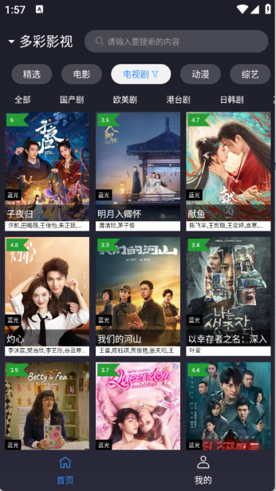 2、进入到首页之后顶部栏中汇集了很多的影视剧集,电视剧、电影以及综艺等类型都有。
