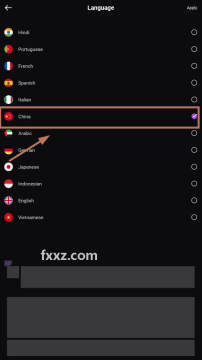 3、在展开的语言选择中找到china,点击右上方的确定;