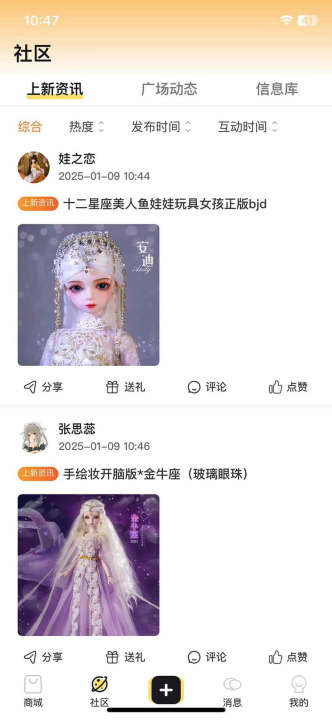 在互动社区,您将找到志同道合的玩偶爱好者。分享您的玩偶收藏故事、展示新入手的萌物、交流把玩心得与保养经验,参与话题讨论与互动活动。在这里,您不再是独自欣赏玩偶的孤独者,而是与一群热爱生活、钟情玩偶的朋友共同编织美好回忆的参与者。