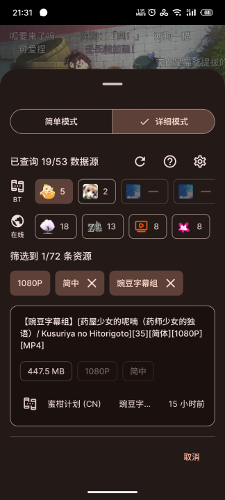 全自动整合多个 BT 数据源与在线数据源, 兼顾资源质量与缓冲速度。