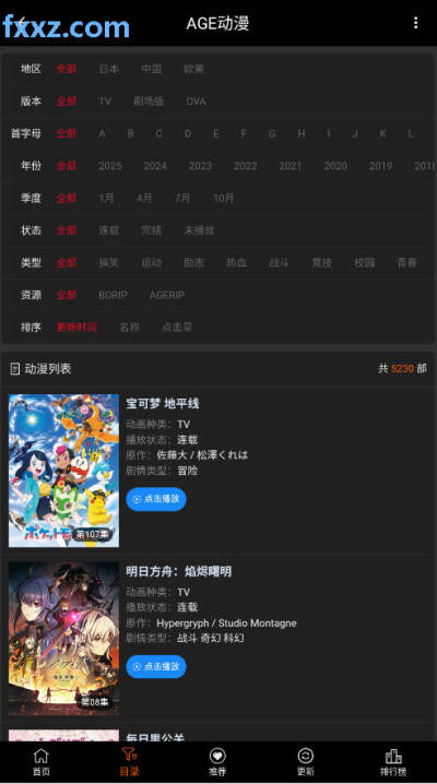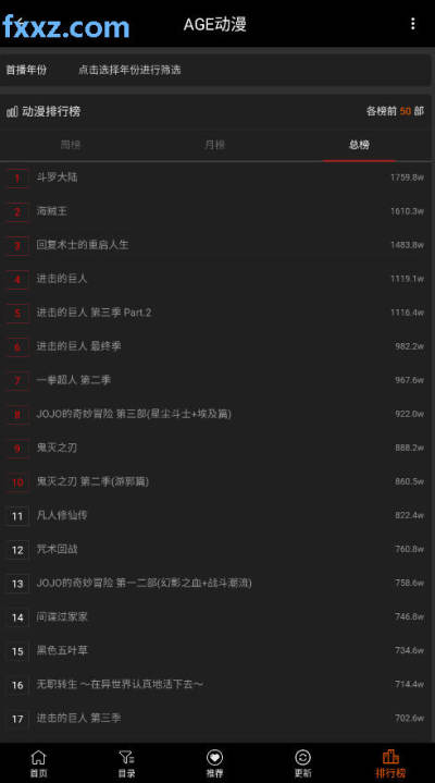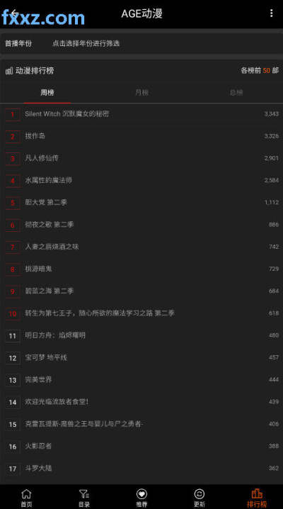 5、在排行榜页面,将一年动漫进行排序,帮助用户及时发现精彩的动漫。