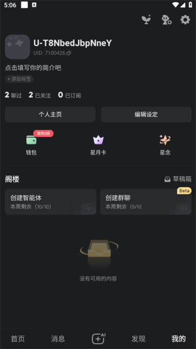 3、点击我的,找到阁楼下方的创建智能体,然后点击