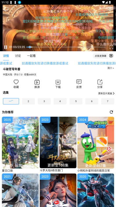 下载安装并打开爱看影视app,可以在推荐板块或直接搜索进入想看的影视界面,若视频无法播放或播放卡顿,可点击如图所示换源按钮