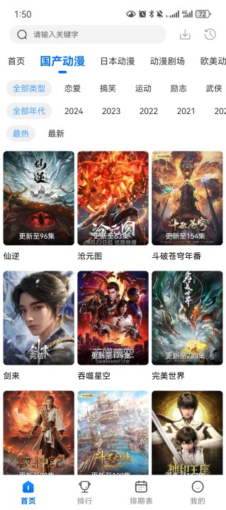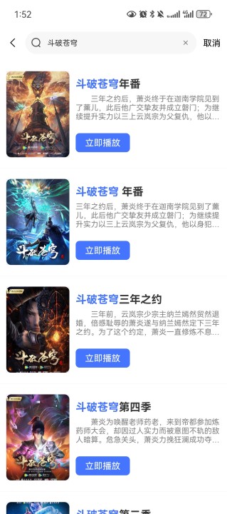 比如搜索斗罗大陆,就会出现相关的动漫作品,如果是系列会全部展示;